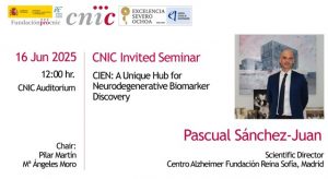 OnMonday, June 16 at 12 pm, Pascual Sánchez-Juan (Centro Alzheimer Fundación Reina Sofía, Madrid) will give the CNIC Invited Seminar entitled “CIEN: A Unique Hub for Neurodegenerative Biomarker Discovery”.